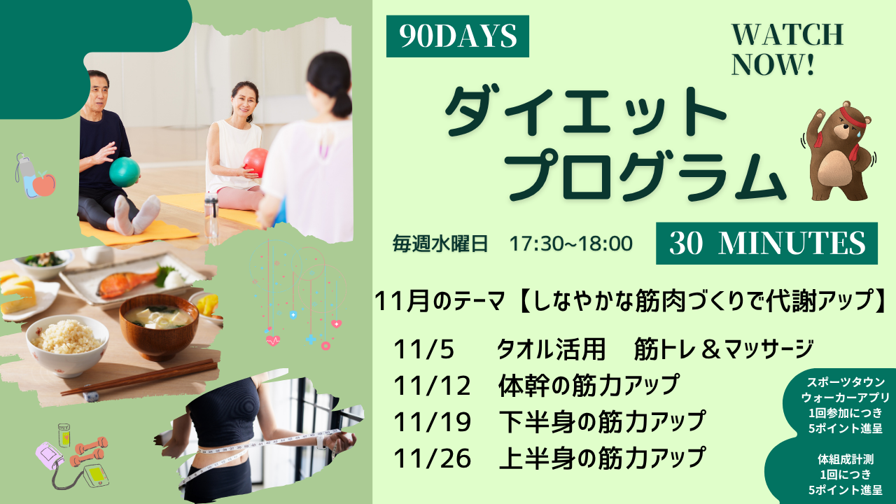 11月5日~毎週水曜日 17:30~18:00 なかまーる健康ホールにて開講しています。