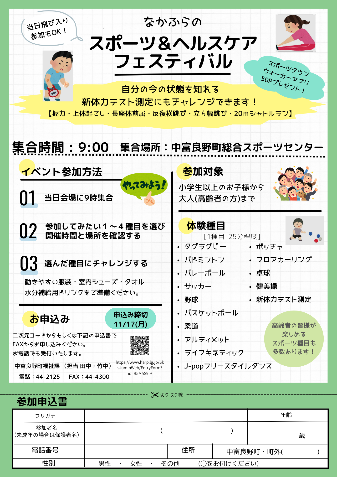 なかふらの【スポーツ&ヘルスケアフェスティバル】のご案内