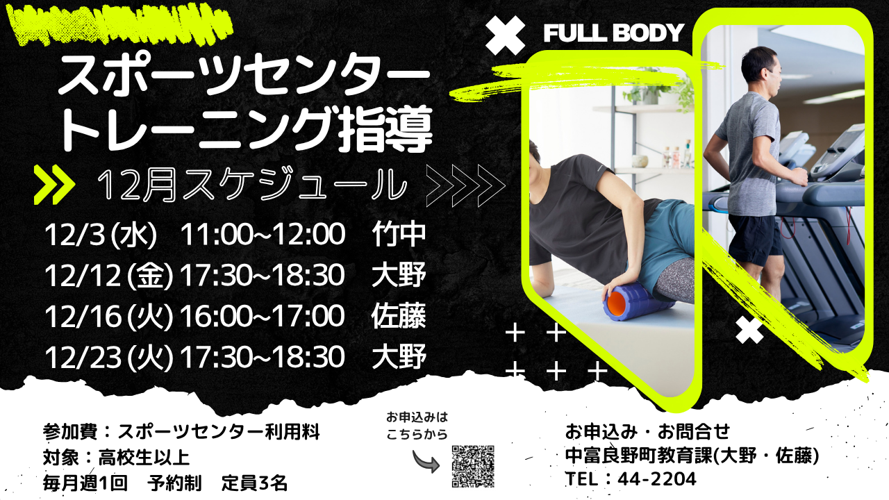 地域ポイント対象【12月スポーツセンタートレーニング指導】のお知らせ