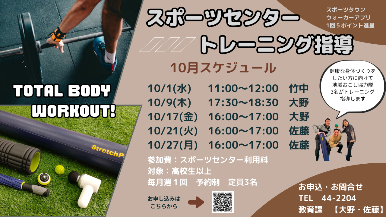 地域ポイント対象【10月スポーツセンタートレーニング指導】のお知らせ